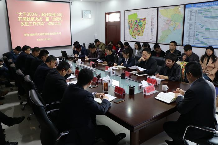 本報訊 3月18日,青島西海岸交通投資建設有限公司召開“大干200天,起步就是沖刺,開局就是決戰(zhàn)”暨“加強和改進工作作風”動員大會,深入學習貫徹全區(qū)“項目落實年”、“改革創(chuàng)新年”和“作風建設年”活動精神,深化作風建設,推進項目落實,高標準、高效率、高水平推進青島西客站規(guī)劃建設。